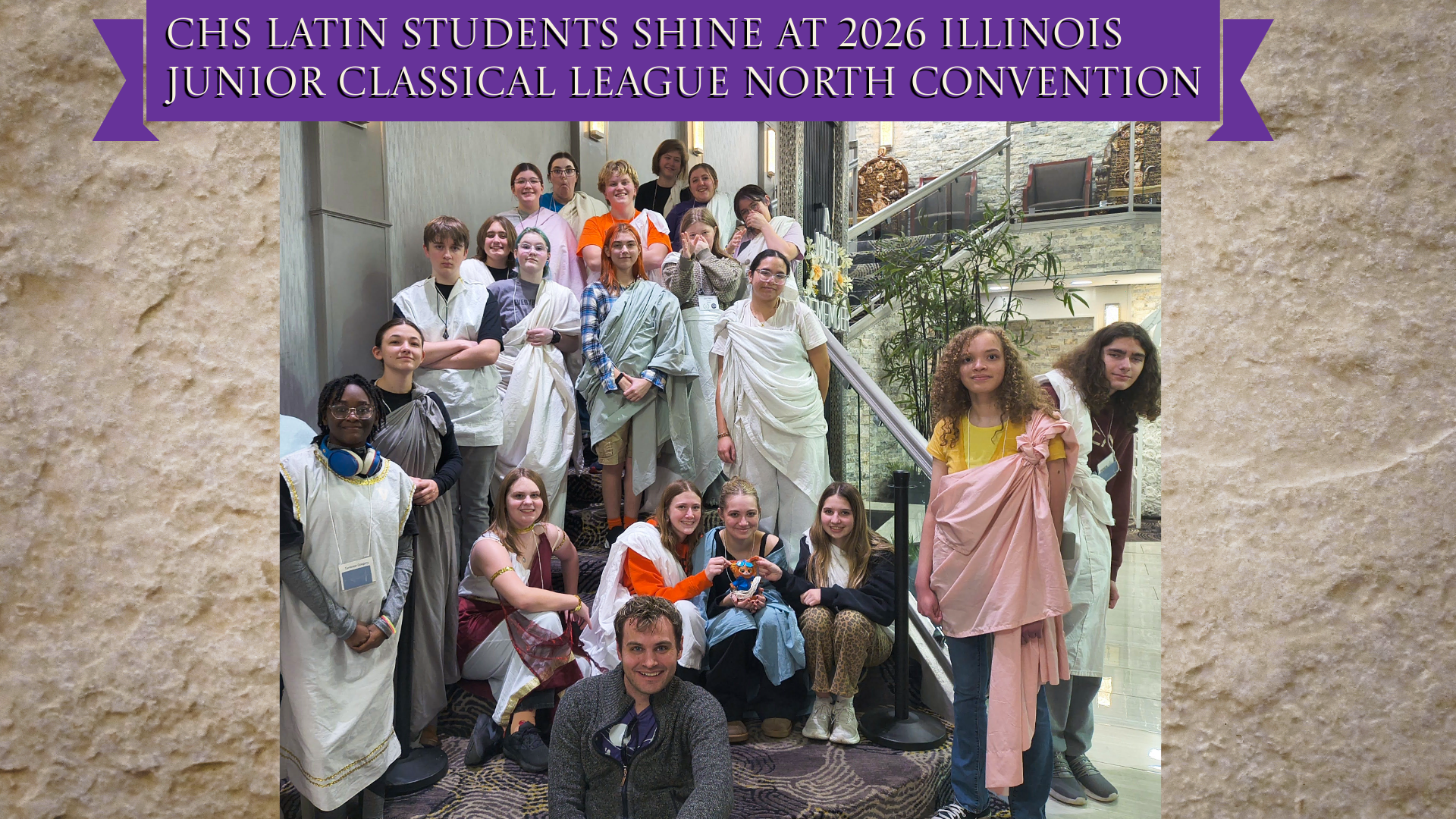 Twenty Collinsville Latin students competed and participated in the recent Illinois Junior Classical League North Convention in Skokie, Illinois. Collinsville placed 5th overall.Latin teacher and c...